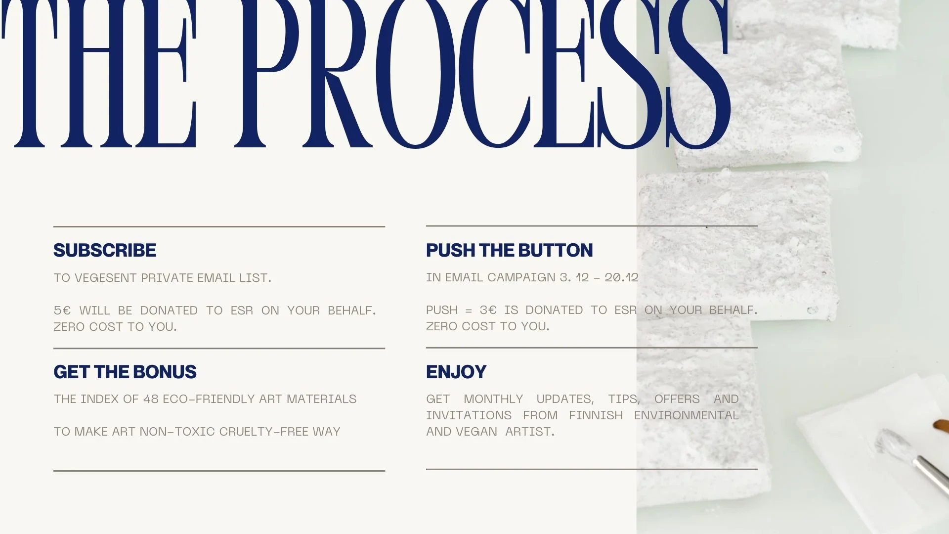 • Every click = 3€ donated by Vegesent to ESR (up to 300€)